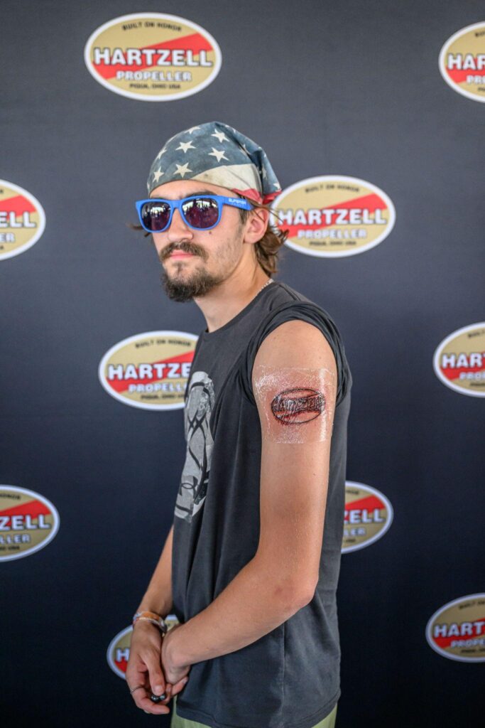This year, we were proud to host the first-ever pop-up tattoo experience at SUN ‘n FUN. Over 40 attendees received a free aviation-themed tattoo by local artists from Atomic Tattoos, and many more joined us to enjoy temporary tattoos, beer and taco flights, and good company. One fan even chose to have the retro Hartzell logo tattooed on his arm — now that’s dedication!